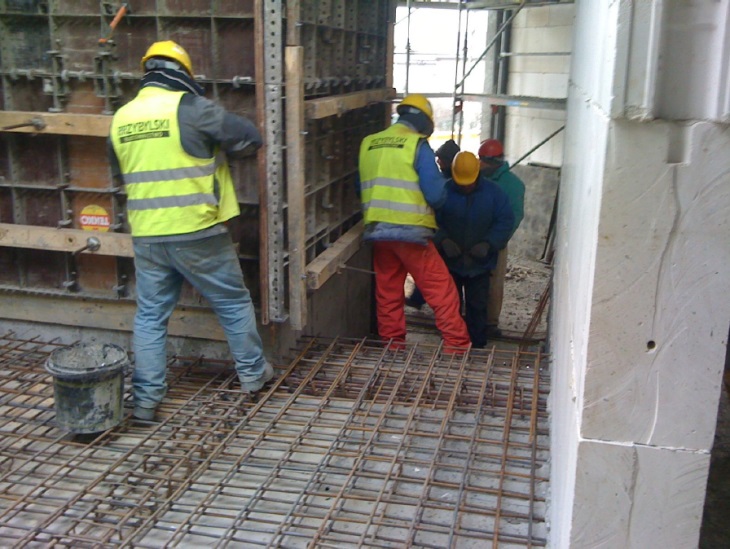 Wykonywane jest zbrojenie, szalowanie i betonowanie attyk.