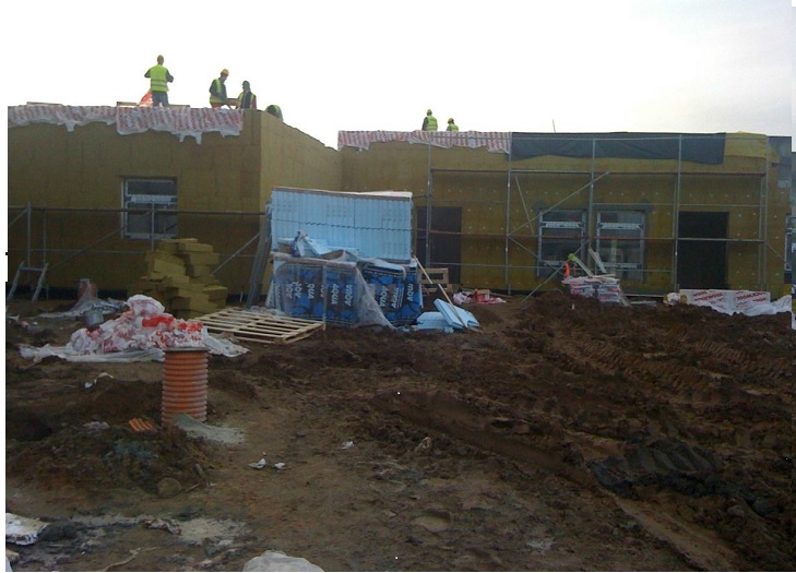 Trwa wykonanie warstw izolacji termicznej i pokrycia dachu nad parterem.