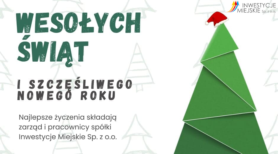 Informujemy, że w dniu 31.12.2024 r. Inwestycje Miejskie Spółka z o.o. czynna jest w godzinach 7.30-12.00