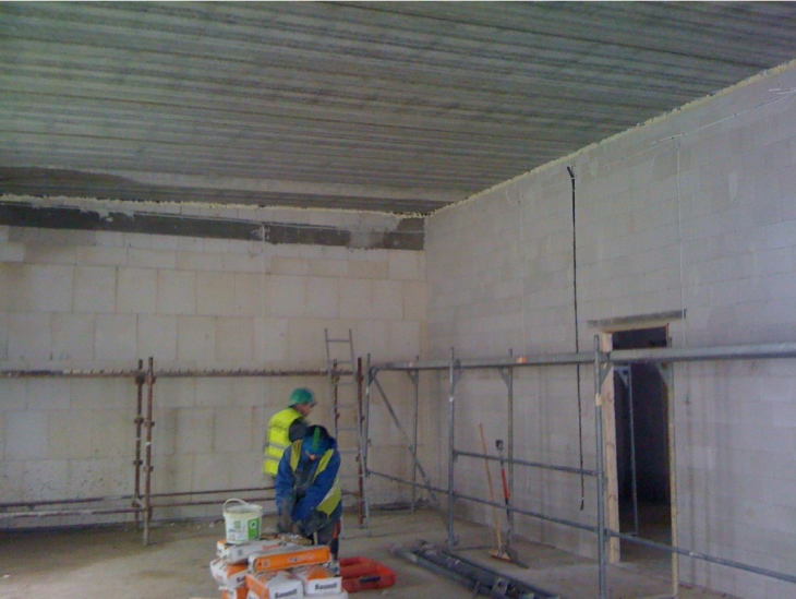 Rozpoczęto montaż okien. Kontynuowane są prace związane z ociepleniem ścianbudynku. Trwają prace tynkarskie wewnętrzne. Trwają prace związane zukładaniem wewnętrznej instalacji elektrycznej. [...]