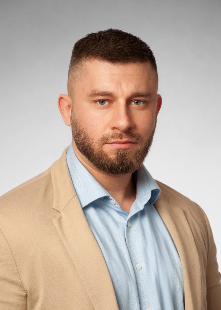 Absolwent Uniwersytetu Mikołaja Kopernika w Toruniu na kierunku Stosunki Międzynarodowe w specjalności ekonomicznej, a także Filologii Bałkańskiej na tym samym uniwersytecie. Ukończył studia MBA na Akademii Nauk Stosowanych Wincentego Pola w Lublinie oraz studia podyplomowe pod nazwą „Samorządowy Menedżer Energii” na Wyższej Szkole Ekologii i Zarządzania w Warszawie. W przeszłości prowadził własną działalność gospodarczą z zakresu transportu międzynarodowego, pracował także w grupie Wirtualna Polska. Od 2022 roku zasiada w Radzie Nadzorczej Przedsiębiorstwa Gospodarowania Odpadami Sp. z o.o. w Płocku. W spółce Inwestycje Miejskie zaczynał w 2017 roku od stanowiska koordynatora projektu, następnie zajmował stanowiska kierownicze, a od 2022 roku jest członkiem Zarządu.